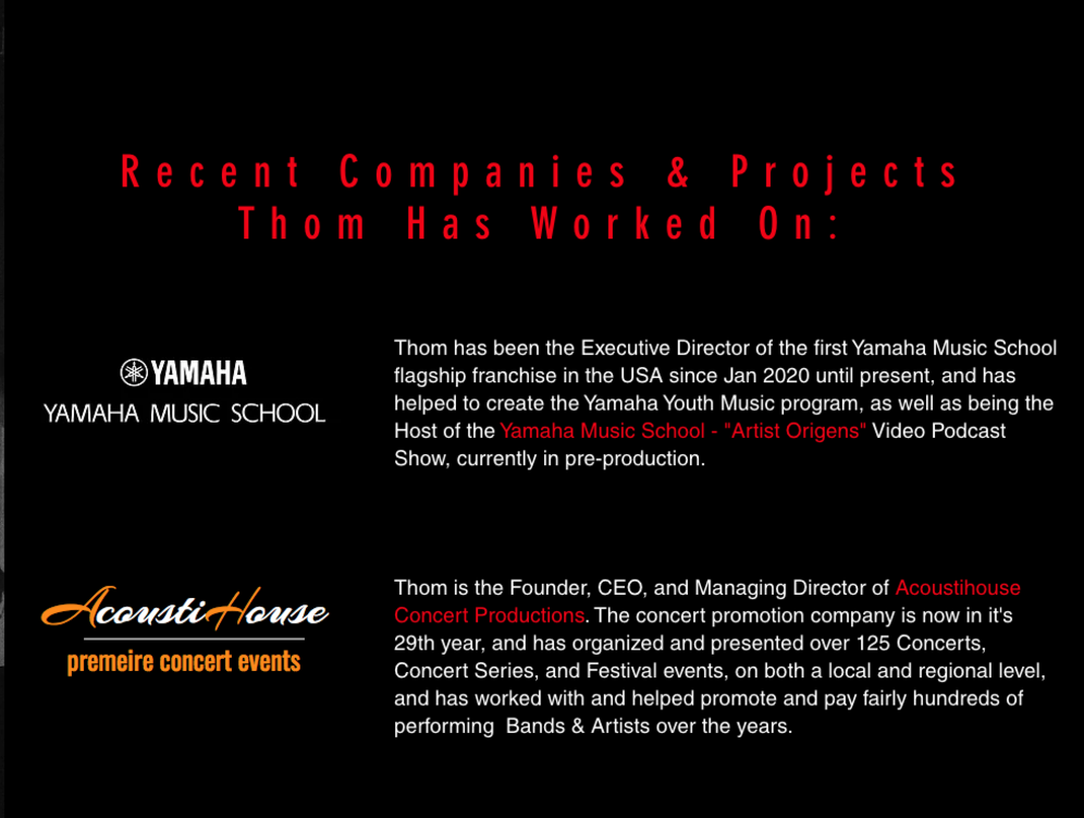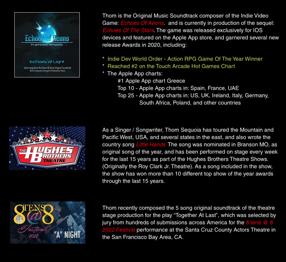 More About Thom Sequoia & Other Music Projects ...